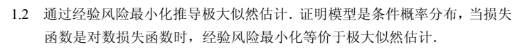 所以最小化经验风险R,相当于最大化似然估计\(log(\prod^N_{i=1}\frac{P(X_i,Y_i)}{P(X_i)})\)