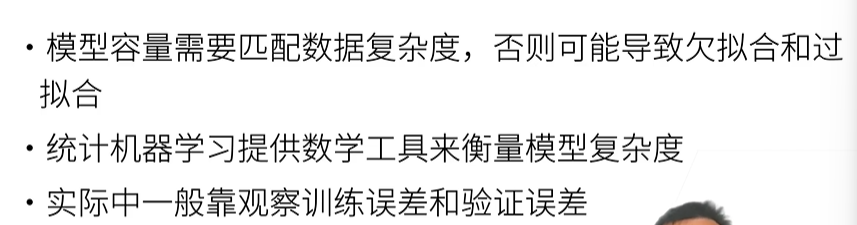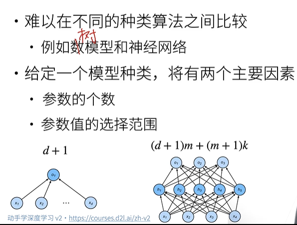 - 训练样本的数量。即使你的模型很简单,也很容易过拟合只包含一两个样本的数据集。而过拟合一个有数百万个样本的数据集则需要一个极其灵活的模型。