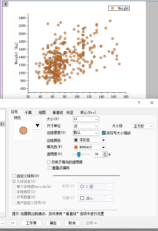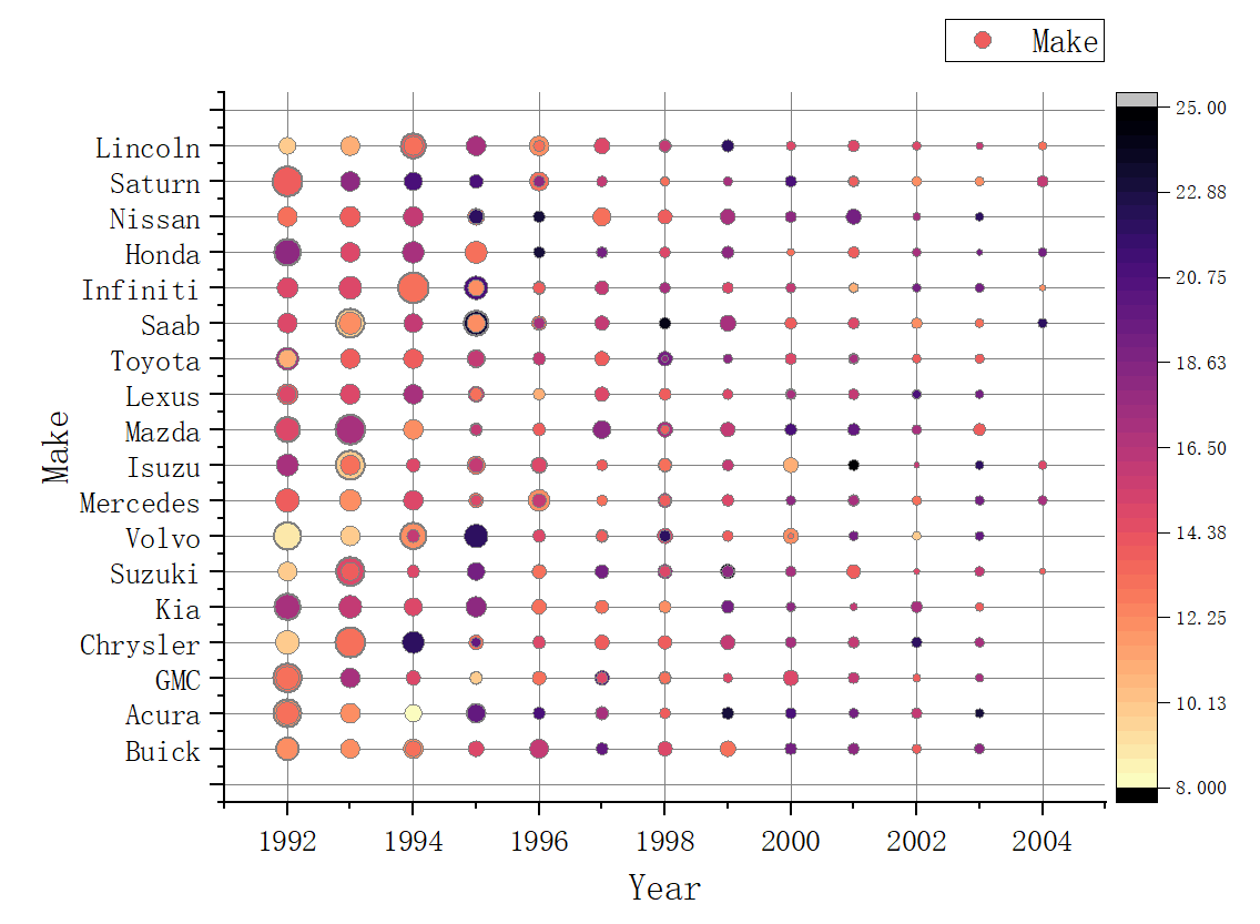 大小选择某一列数据映射,颜色选择某一列数据进行映射