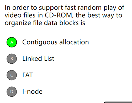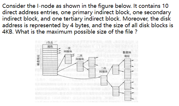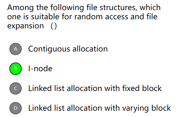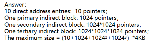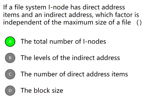 文件如果很大,i节点块的大小需要变大,可能还需要指向另一块包含额外块地址的块的地址,所以B、C、D有关