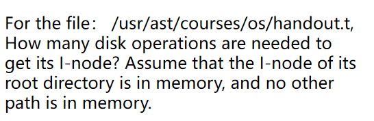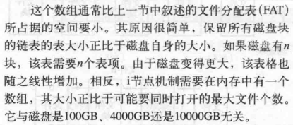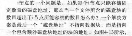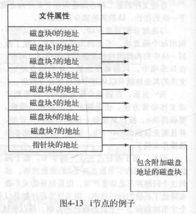 - 不要在目录中列出磁盘块地址,而是在一个小的数据结构中,目录指向这个数据结构。例如,索引节点、i节点