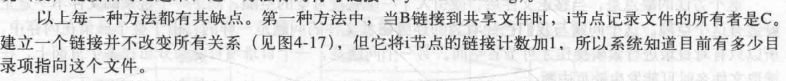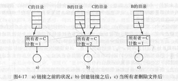 - 如果目录包含磁盘地址,则必须在目录 B 中制作C目录中的磁盘地址的副本。如果 C 或 B 往文件中添加内容,新的数据块将仅出现在添加工作的用户的目录中。