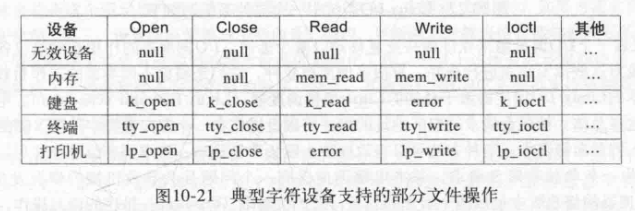- 系统将索引到字符设备的哈希表中以选择适当的结构,然后调用相应的函数来执行工作。
