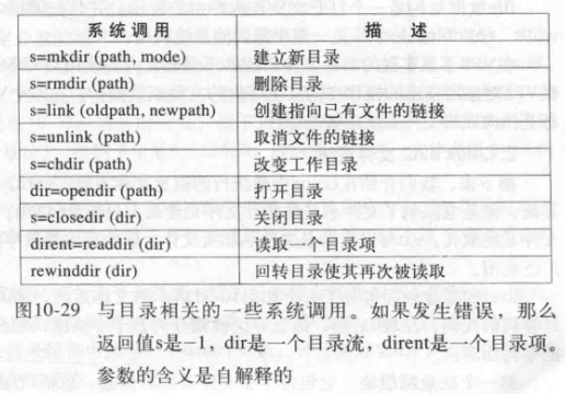 mkdir,rmkdir:创建和销毁目录(目录只有在为空时才能删除) link:创建链接;取消链接:删除链接 chdir:更改工作目录 opendir、closedir、readdir、rewinddir:用于读取目录