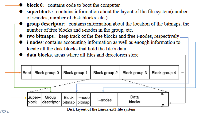 - two bitmaps:分别跟踪空闲块和空闲i节点