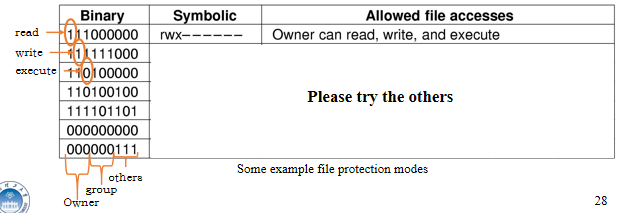 - chmod:最常用的一种,用于更改保护模式