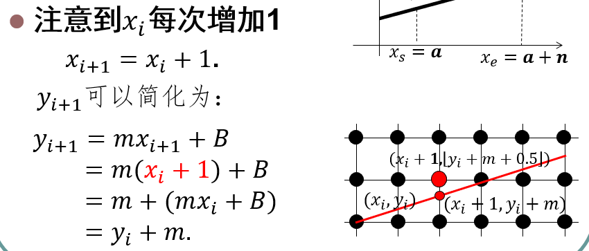 - \(y_{i+1} = mx_{i+1} +B = mx_i+m+B\)