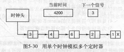 为了满足多个计时请求,操作系统需要用一个时钟模拟多个虚拟定时器。