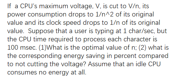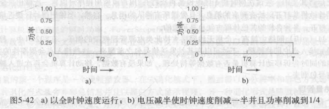 - 将电压降低 2 倍,时钟速度降低 2 倍,功耗降低 4 倍。
