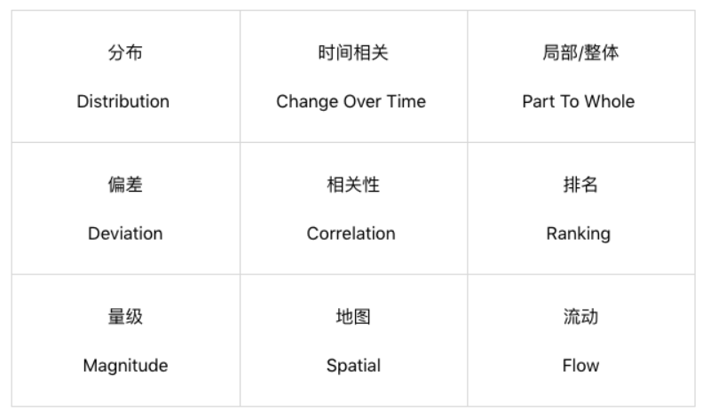1. 比较:比较数据间各类别的关系,或者是它们随着时间的变化趋势,比如折线图;