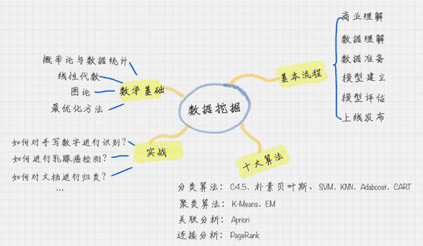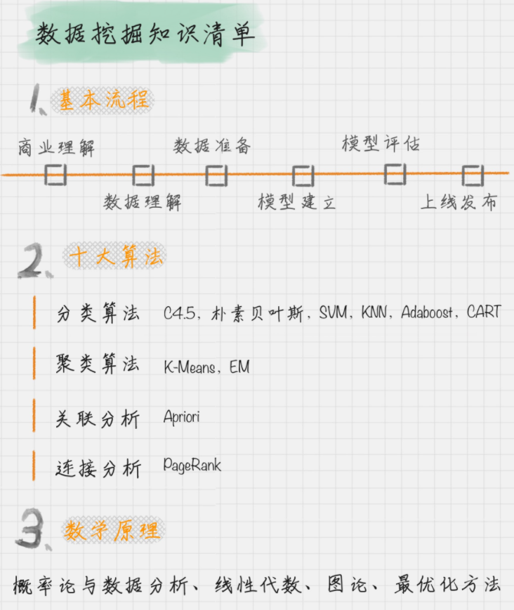 - 上线发布:呈现的形式可以是一份报告,也可以是实现一个比较复杂的、可重复的数据挖掘过程
