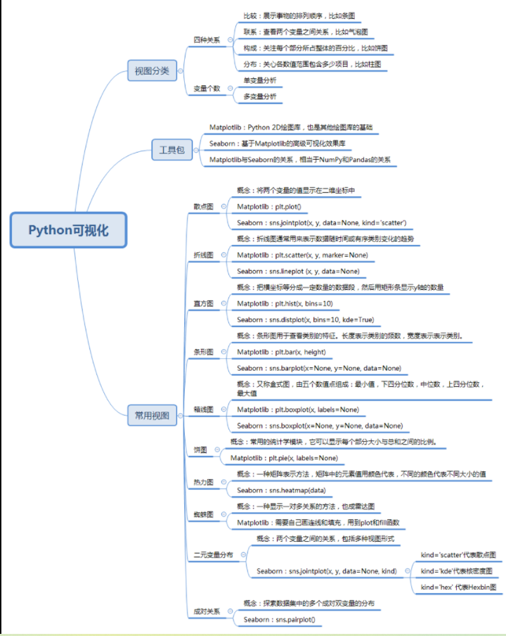 4. 分布:关注单个变量,或者多个变量的分布情况,比如直方图。