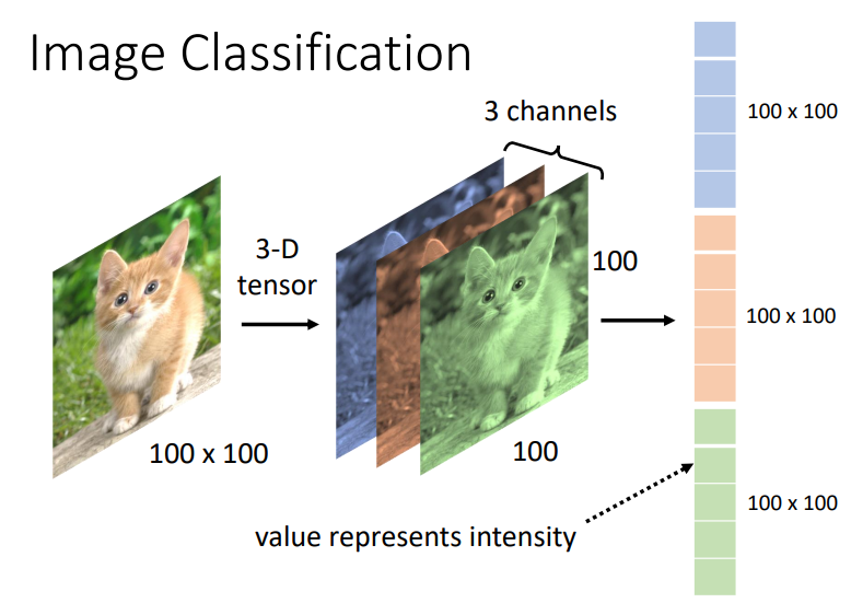 - 假设我们现在有一张彩色的图片,在电脑中它有红绿蓝三个通道,每个通道是一个100*100的矩阵