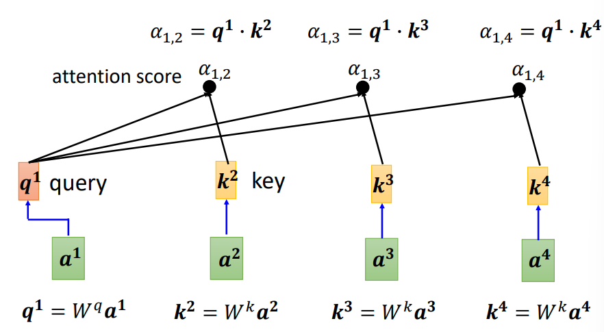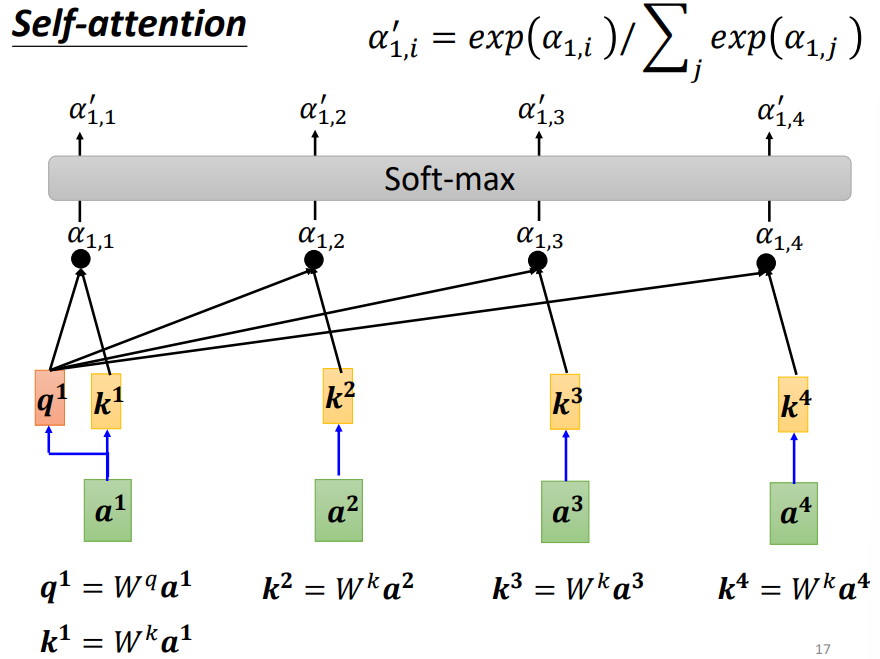 &=\sum_{i=1}^{N}\frac{exp(q^1\cdot k^i)}{\sum^N_{j=1}exp(q^1\cdot