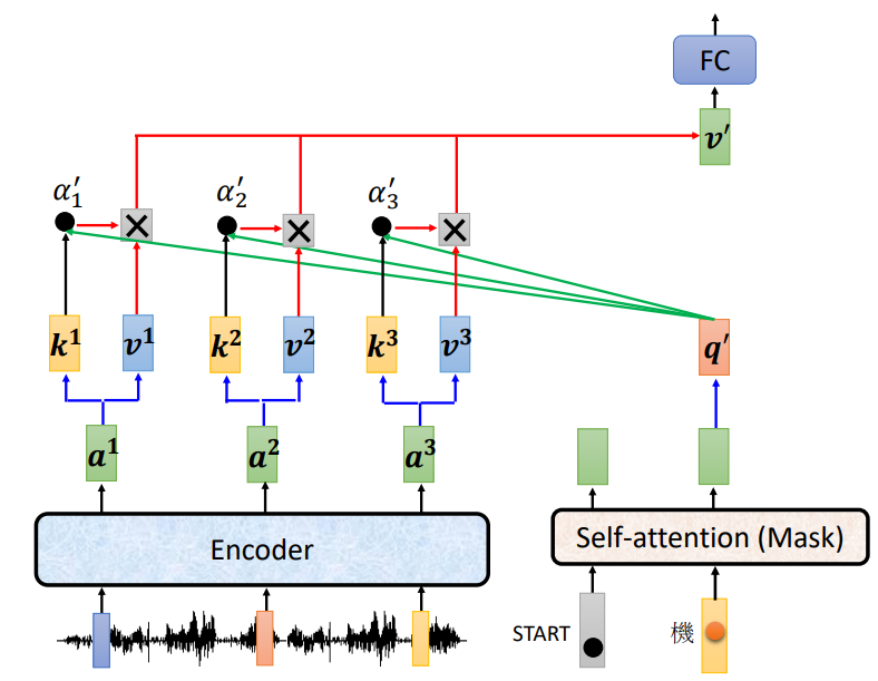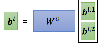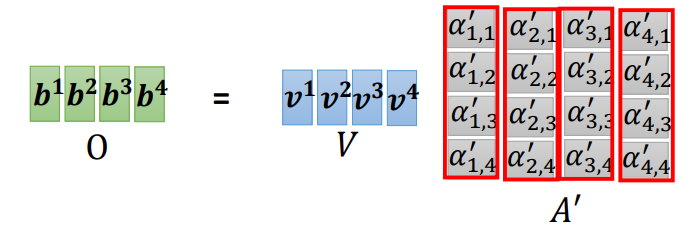 再将得到的\(\alpha^{\prime}\)与对应的\(v\)矩阵进行运算,合成起来得到\(b^1\),即 \[