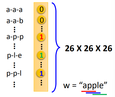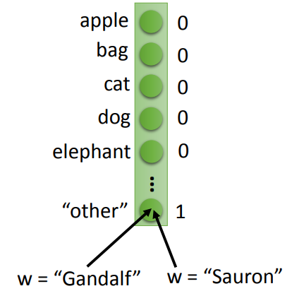 - 对于某一个单词,它所在维度为1,其他维度为0
