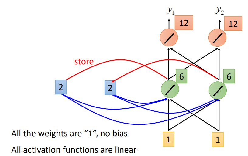假设所有的权重为1,没有bias,激活函数都是线性的