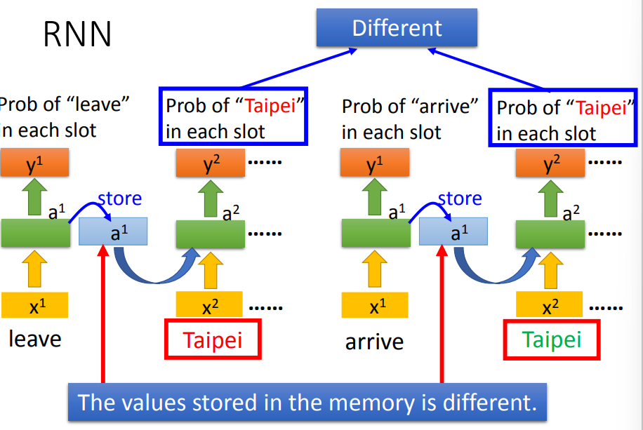 如上图所示,当前输入,可以获得前一个输入的信息,可以简单区分出一些不同