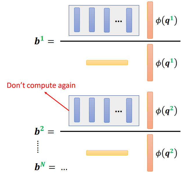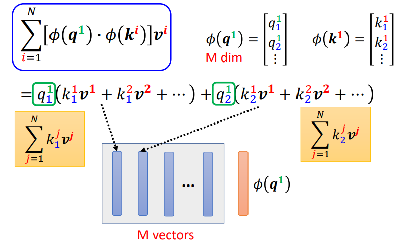 \sum^N_{j=1}\phi(q^1)\cdot\phi(k^j) = \phi(q^1)