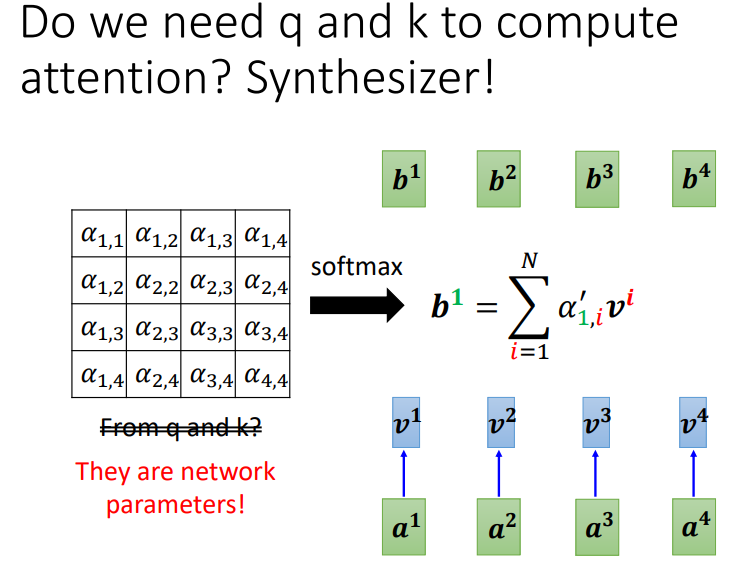 注意力机制通过\(q\)和\(k\)来计算Attention Matrix,但是我们可以将整个矩阵是为网络的参数