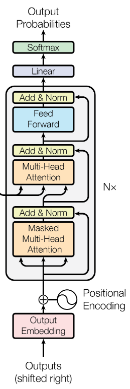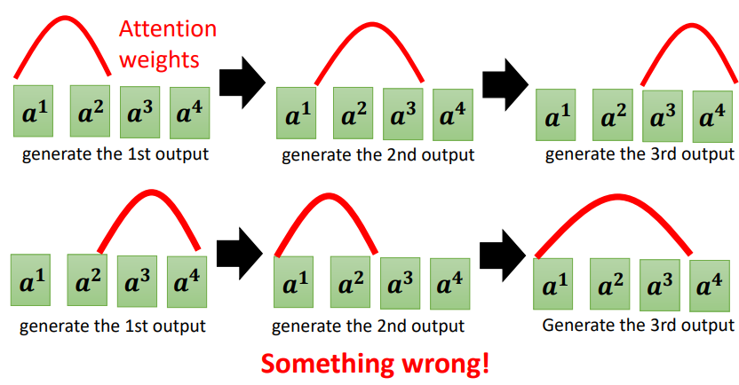 例如下面的序列中,在输出时,第一个输出中,Attention关注的是后面的序列