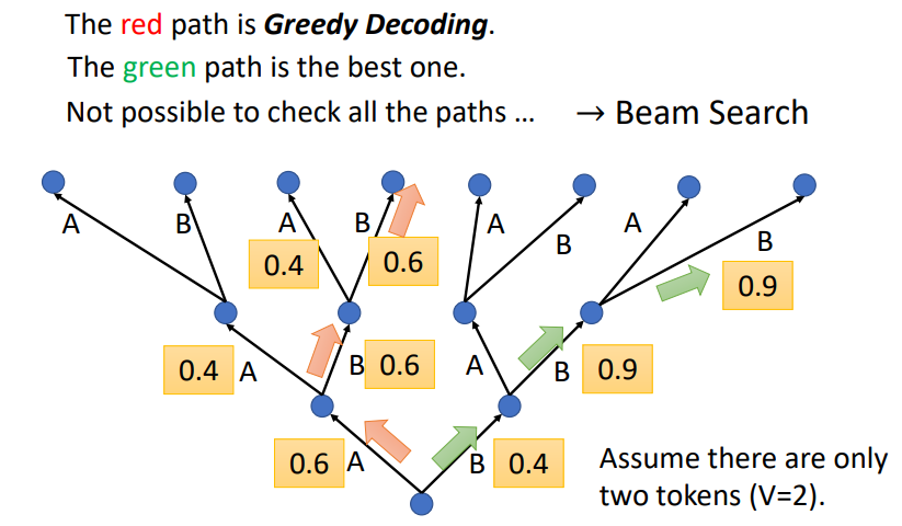 - Beam Search会综合考虑全局的分数,选择最好的结果