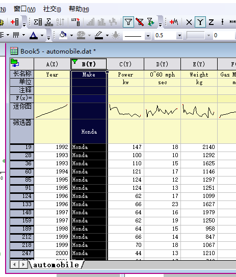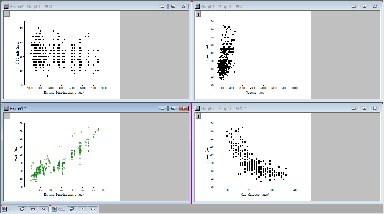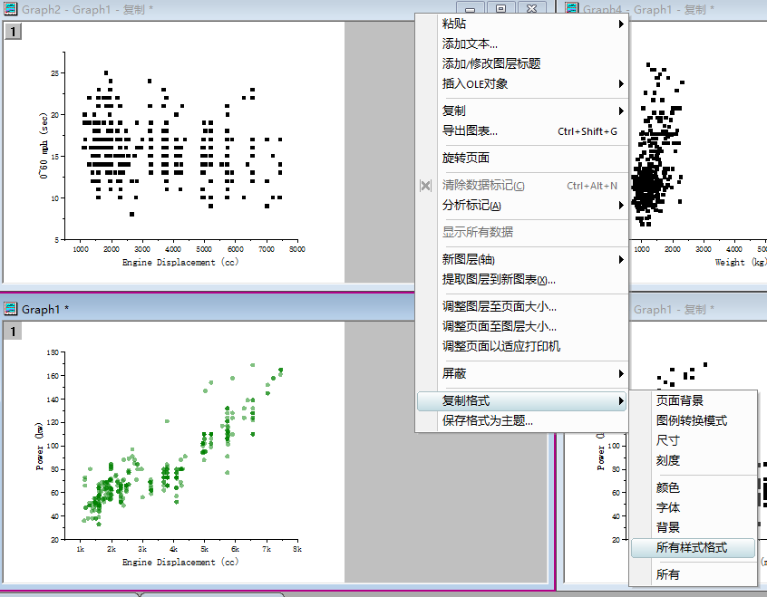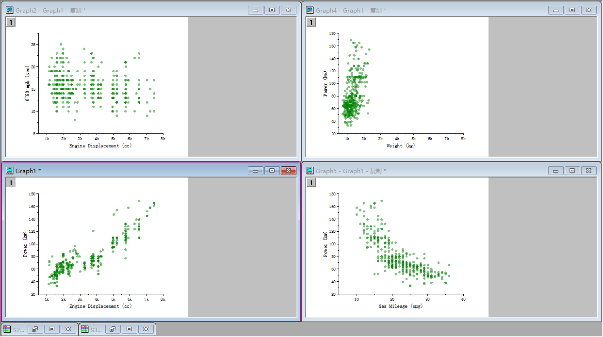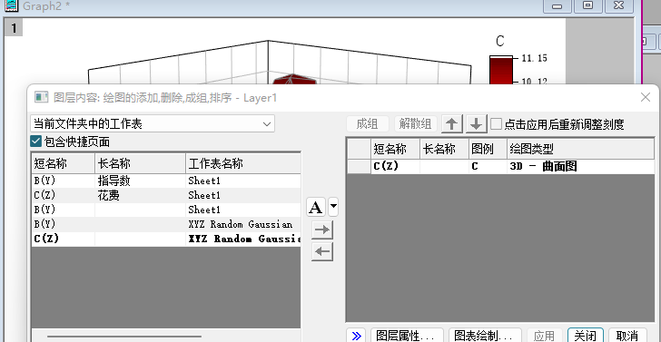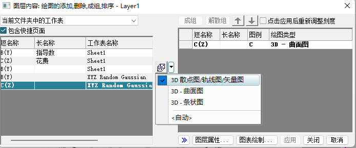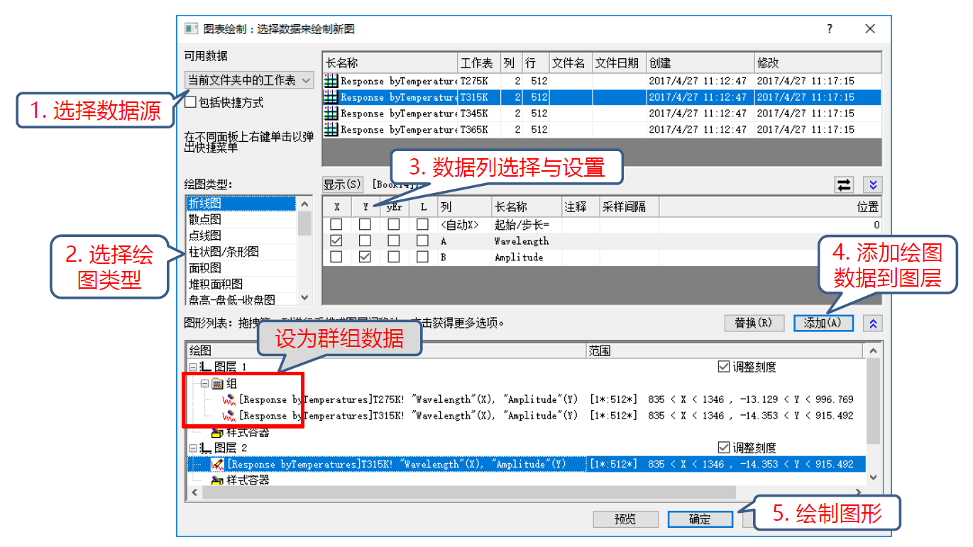 - 可在项目文件范围内选取不同工作表的数据列,绘制在同一图形上
