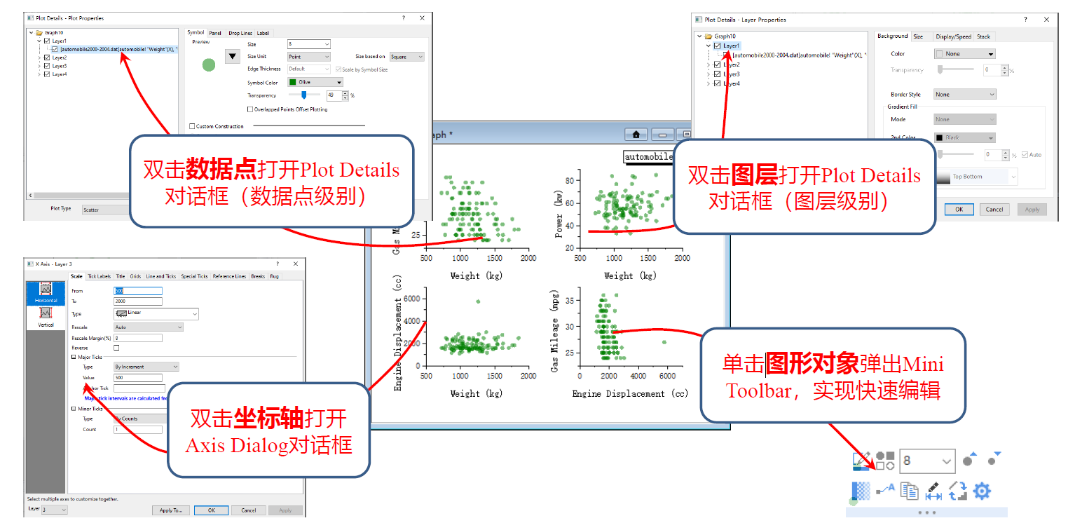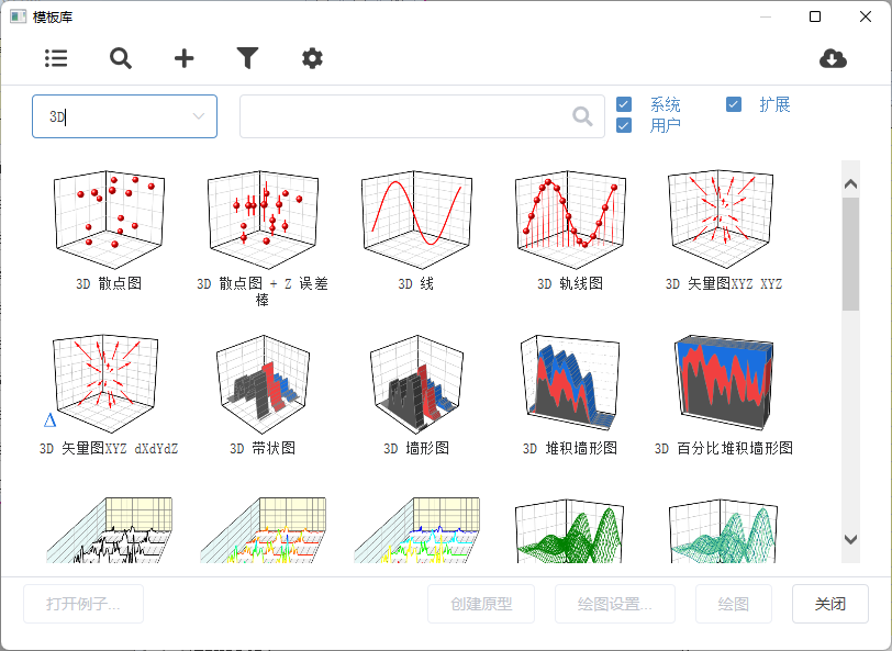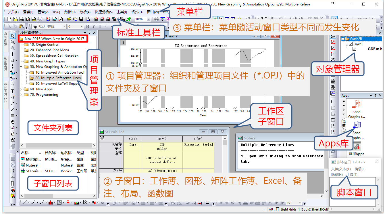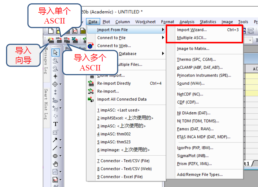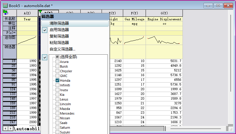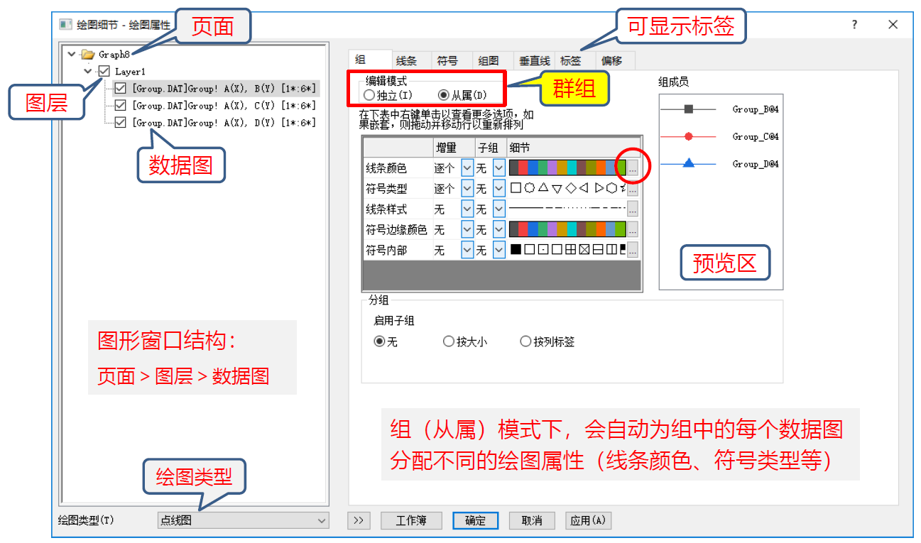 - 可在项目文件范围内选取不同工作表的数据列,绘制在同一图形上