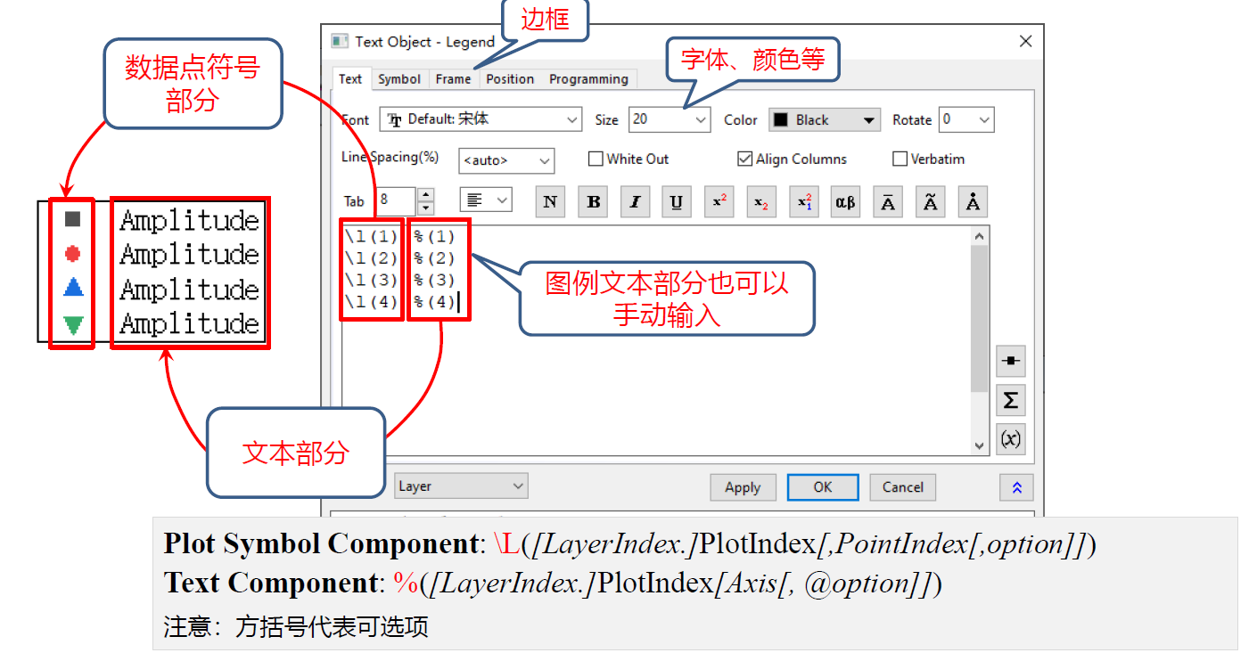 自定义格式旁边右箭头可以添加格式,构成自己的图例样式