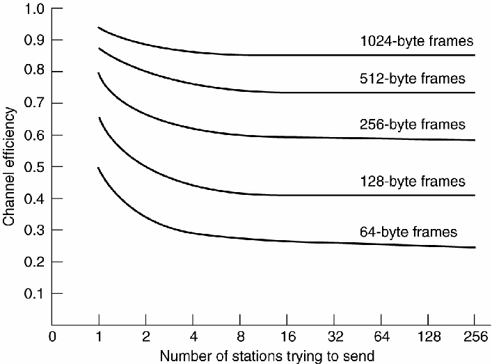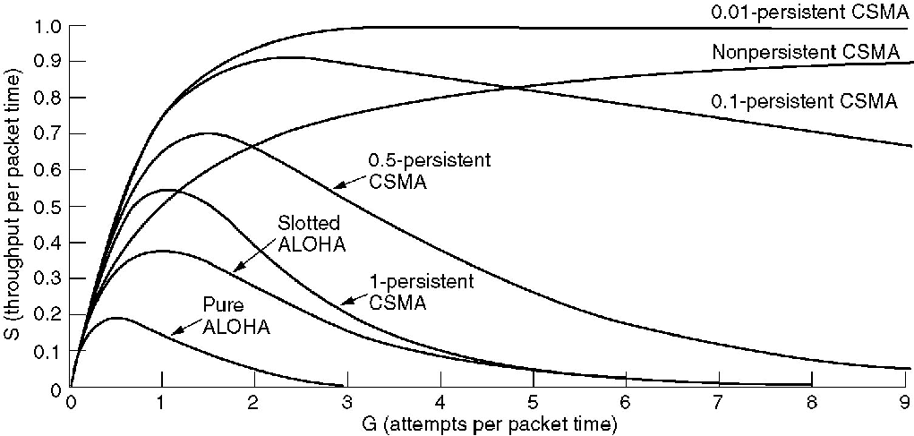 - 在任何广播网络中,关键问题是如何在多个竞争用户之间分配单个广播信道。
