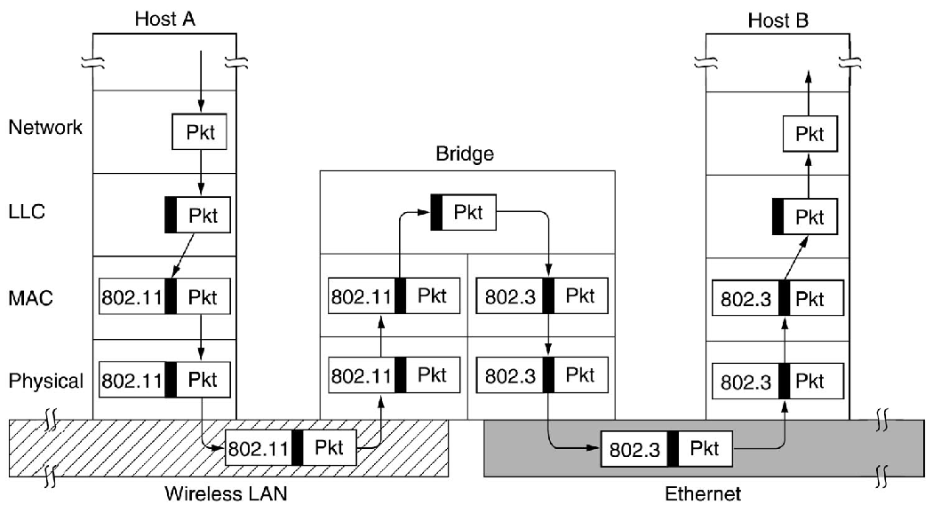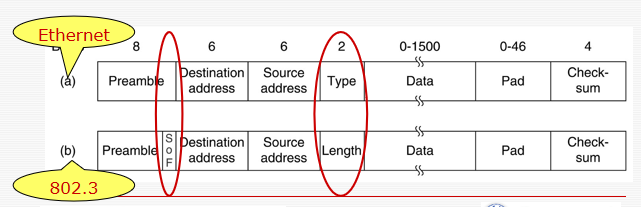 - 不同的最大帧长(如,802.3 1526 字节、802.11 2346 字节)