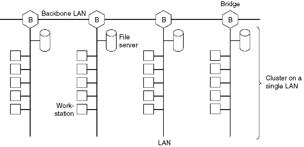 - 通过透明网桥(transparent bridges)连接的多个 LAN