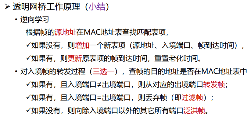 - 透明网桥以混杂模式(promiscuous mode)运行,接受在它所连接的所有 LAN 上传输的每一帧。