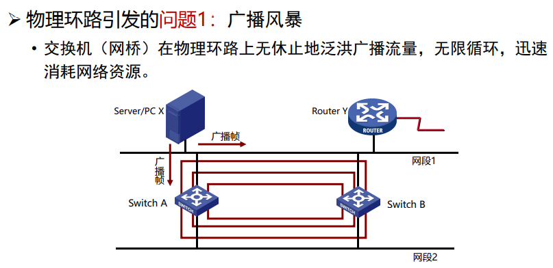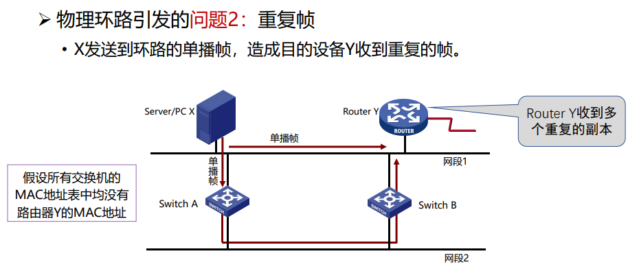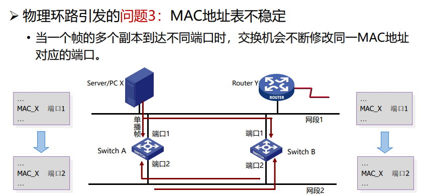 - 在生成树中,从每个源到每个目的地都有唯一的路径,循环是不可能的。