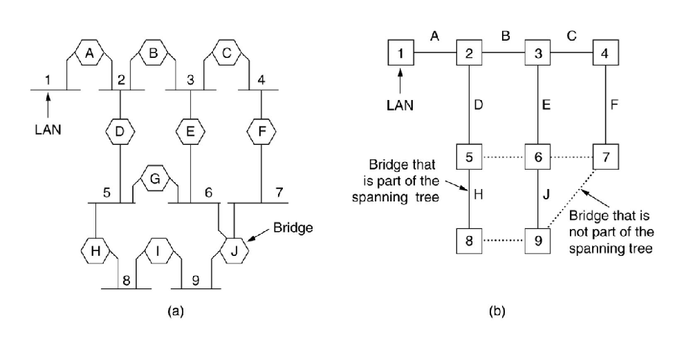 - 构建了从根到每个网桥和 LAN 的最短路径树。