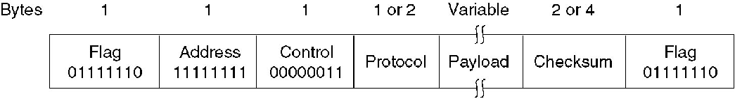 - PPP 在拨号调制解调器线路上使用字节填充,因此所有帧都是整数字节。