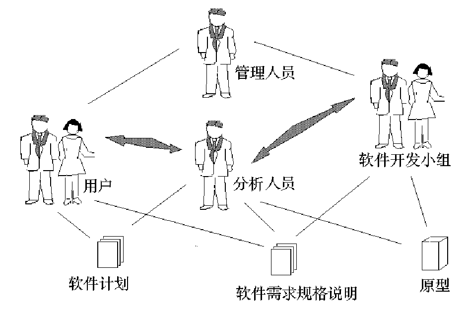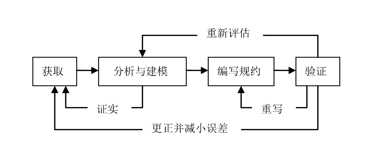 在实际的开发过程中,获取、分析、建模、编写规约和验证这些需求开发活动不会是线性地、顺序地完成。实际上,这些活动是交叉的、递增的和反复的。
