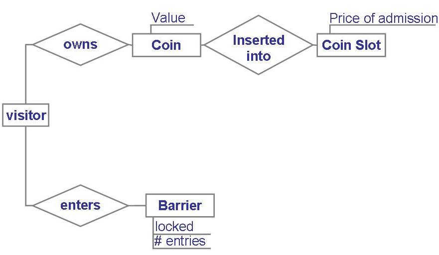 - 描述为两个实体之间的边缘,边缘中的菱形指定关系类型