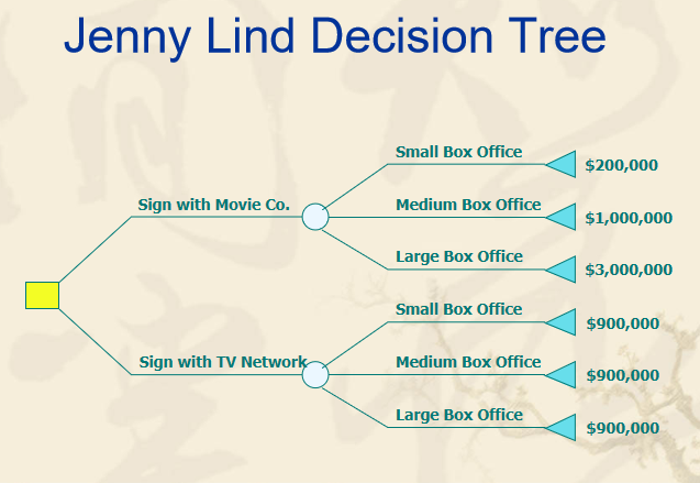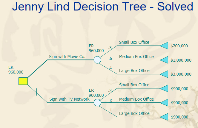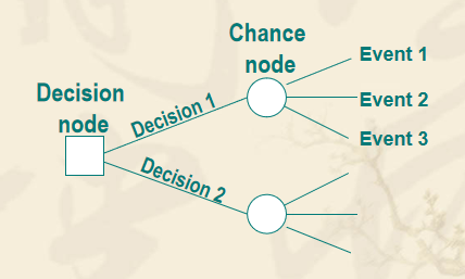 - 求解该树需要修剪决策节点上除最佳决策外的所有决策,并在机会节点上找到所有可能的自然状态的期望值