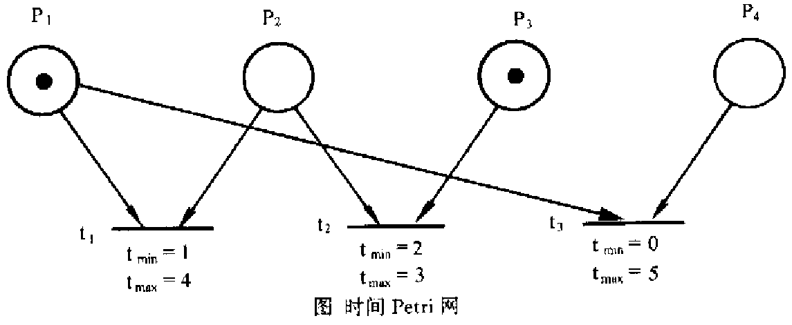 - 时间Petri网的思想:即使一个变迁处于使能状态,它也必须经过\(t_{min}\)之后才能被触发,且必须在\(t_{max}\)之前。