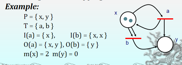 - Petri Nets的图形表示是一个二部图(bipartite graph)