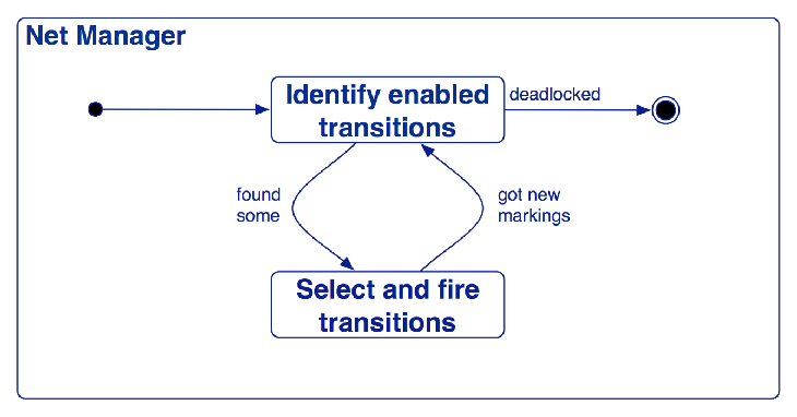 - 单个“网络管理器”监视网络的当前状态,并触发启用的转换。