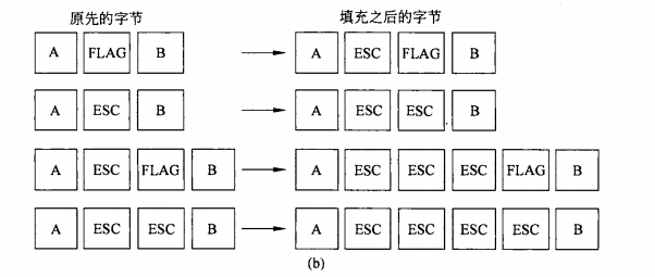 - 解决:添加转义字节,接收方的数据链路层在将数据传递给网络层之前必须删除转义字节,称为字节填充