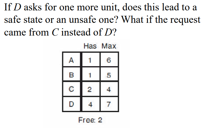 - 在大多数系统中,一次请求一个资源。 希望系统可以决定授予资源是否安全