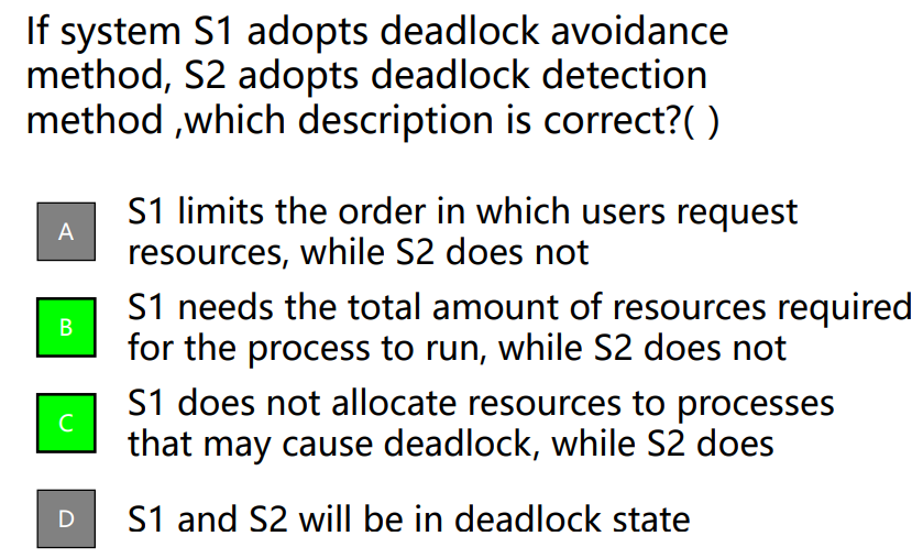 - 死锁避免是看当前拥有的资源和进程所需要的最多资源