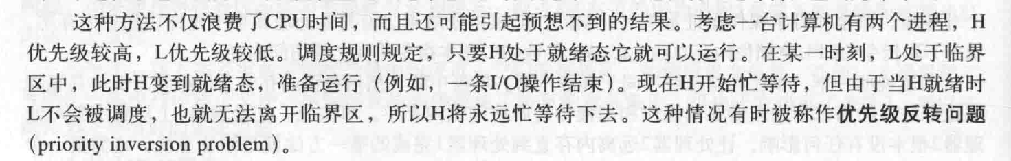 - 忙等待可能导致优先级倒置问题
