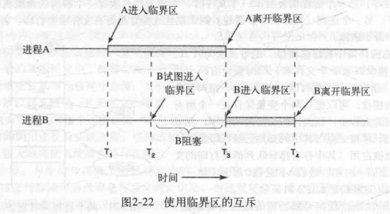 避免竞争条件的关键:禁止超过一个进程同时对共享数据进行读取和写入,即互斥