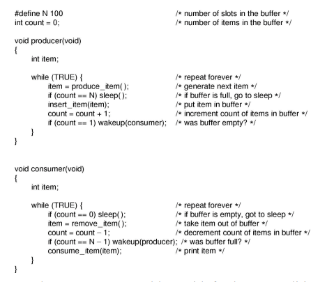 - Two or more processes access shared resourse and the final result depend on the order of the process