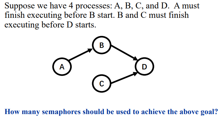 - 孩子吃到水果,则使用同步的信号量,我放了一个苹果,通知他可以吃了