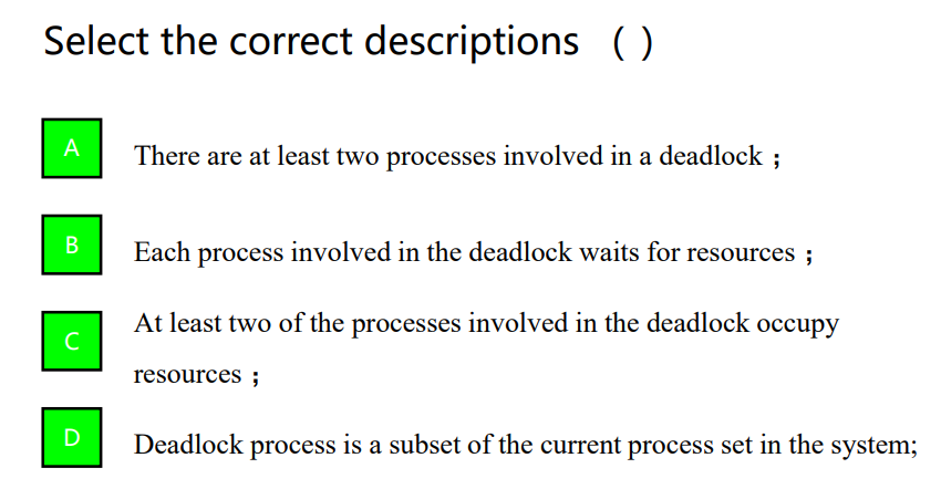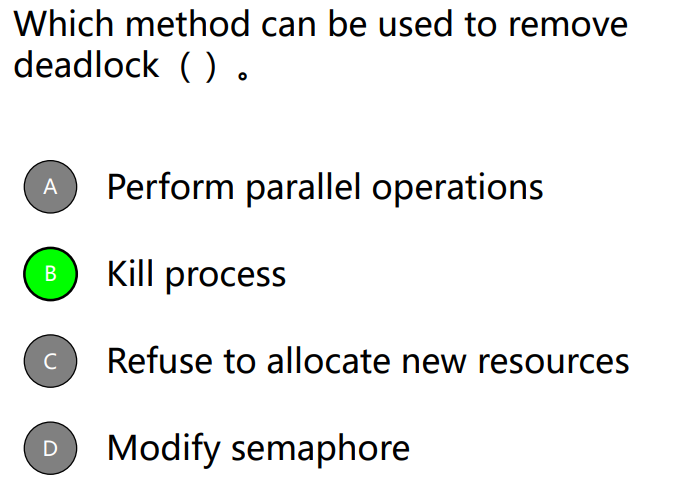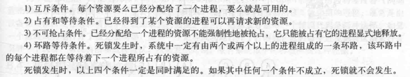 定义:当一组进程中的每个进程都在等待只能由该组中的另一个进程释放的资源时,该组进程(例如)处于死锁状态。